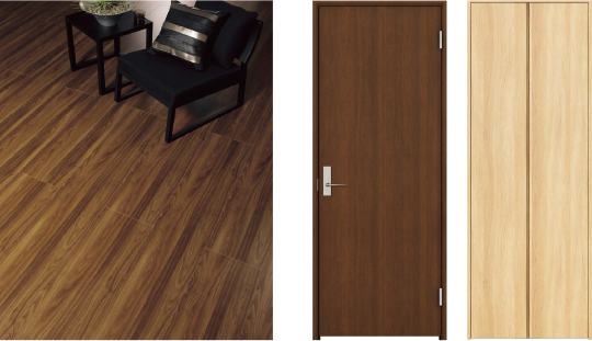 JUSTシリーズの床材は、耐キャスター、耐凹み傷、耐すり傷、耐摩耗、耐ホットカーペットなどの機能を持つ高強度床材で、ワックス不要、抗菌加工、汚れも落ちやすいため、お手入れも楽々です。4種の高級木材柄が選べます。